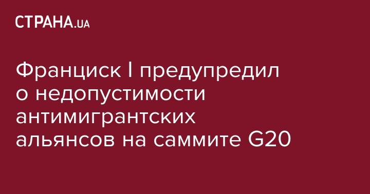 Франциск I предупредил о недопустимости антимигрантских альянсов на саммите G20