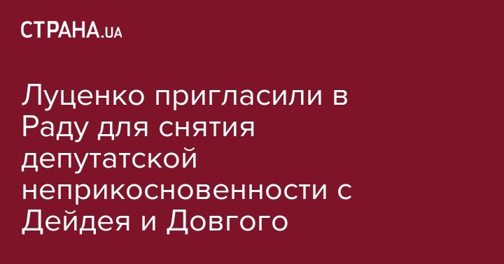 Спикер Верховной Рады Андрей Парубий пригласил генпрокурора Украины Юрия Луценко в парламент, чтобы тот лично озвучил решение о снятии депутаткой неприкосновенности с народных депутатов Евгения Дейдея (фракция "Народный фронт") и Олеся Довгого (группа "Воля народа"). Об этом сообщает "Интерфакс-Украина"