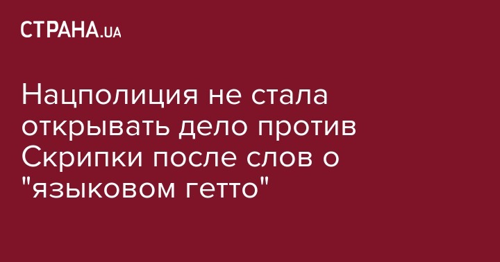 Главное следственное управление Национальной полиции отказалось открывать уголовное производство в связи с заявлениями музыканта Олега Скрипки о необходимости создания гетто для граждан Украины, неспособных выучить украинский язык. Об этом говорится в ответе Национальной полиции на запрос Украинских Новостей.