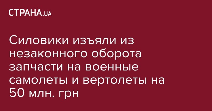 "В ходе спецоперации, проведенной Генпрокуратурой совместно с СБУ, из незаконного оборота изъято авиазапчасти и комплектующие к военным вертолетов и самолетам на общую сумму около 50 млн гривен", - сказано в нем.