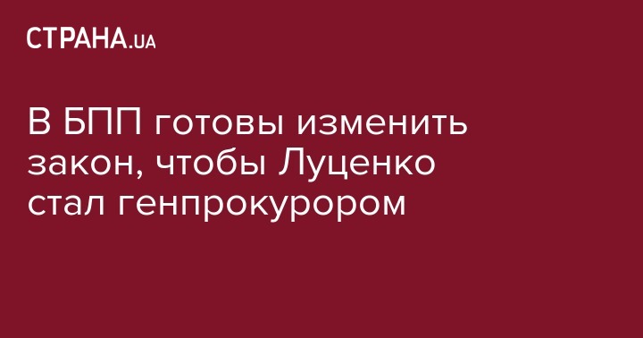 Фракция "Блок Петра Порошенко" рассматривает кандидатуру Юрия Луценко на должность генерального прокурора и уже нарабатывает изменения в закон о прокуратуре, сообщает 112 Украина.