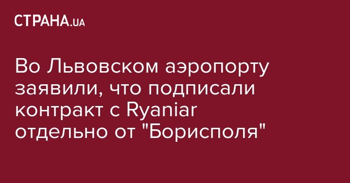 "Аэропорт "Львов" очень долго проводил переговоры с Ryanair, более полугода, процесс был чрезвычайно сложным, но после долгих убеждений и согласований авиакомпания приняла наши условия, мы подписали соглашение, которое абсолютно законно, не противоречит законодательству", - сказала Романовская.