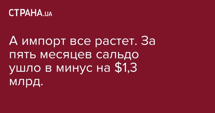 А импорт все растет. За пять месяцев сальдо ушло в минус на $1,3 млрд.