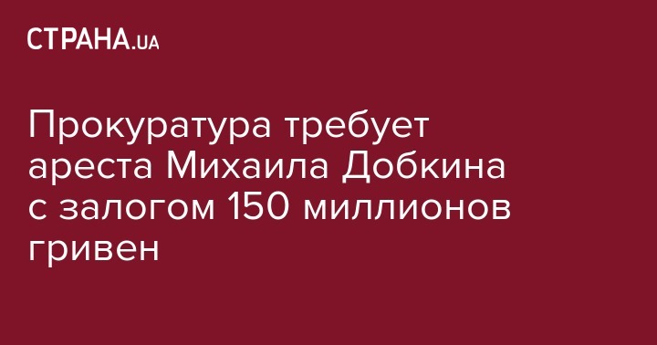 Прокуратура попросила суд избрать народному депутату Михаила Добкина меру пресечения в виде ареста и назначить размер залога в сумме не менее 150 млн грн, сообщает Радио Свобода.
