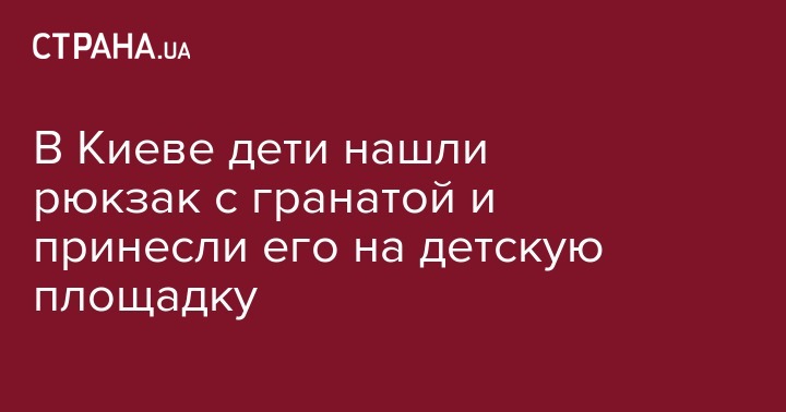 В Киеве на детской площадке Апрельского переулка дети играли найденным где-то рюкзаком, в котором оказалась граната. Опасную находку заметил местный житель. Об этом сообщает "Киев оперативный" на своей странице в Facebook.
