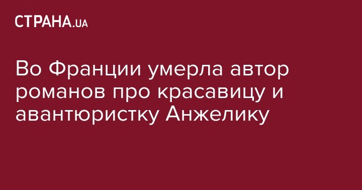 Французская писательница Анн Голон, автор серии исторических романов об Анжелике, скончалась на 96-м году жизни, передает РИА "Новости".