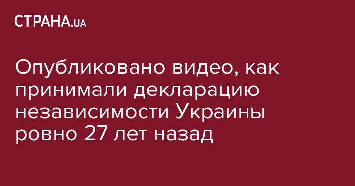 Появилось историческое видео, как принимали декларацию независимости Украины двадцать семь лет назад. Архивное видео разместил премьер-министр Украины Владимир Гройсман на своей странице в Twitter.