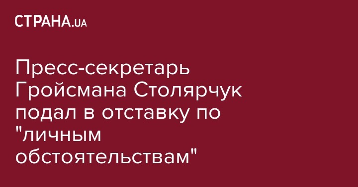 Пресс-секретарь премьер-министра Владимира Гройсмана Дмитрий Столярчук подал в отставку. Об этом он сообщил в соцсети Facebook.