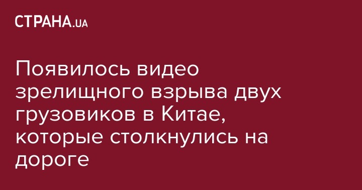 В китайской провинции Чзэцзян возле города Ханчжоу на трассе прогремел взрыв после того, как один грузовик задел другой на дороге. Момент столкновения попал на видео CCTV News.
