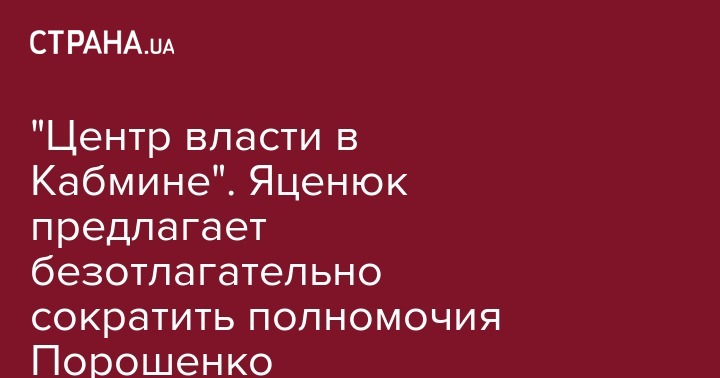 "Настало время навести порядок в системе управления государством. Двух или трехвластие в стране приводит к безвластию и к безответственности. Новая украинская, а точнее изменения в украинскую Конституцию являются неотложными. Если это правительство – это правительство, которое несет всю полноту ответственности перед украинским народом, и это правительство, которое имеет соответствующие права, чтобы реализовывать государственную политику. Если это министры – то это политические фигуры, у которых есть поддержка парламента и которые могут реализовать собственную программу реформ. Поэтому смена системы административного управления, которая бы предполагала восстановление баланса власти в стране, формирование института президента как национального арбитра, который находится над процессом", – отметил Яценюк.