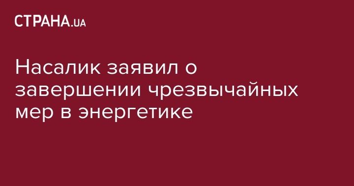 Насалик заявил о завершении чрезвычайных мер в энергетике
