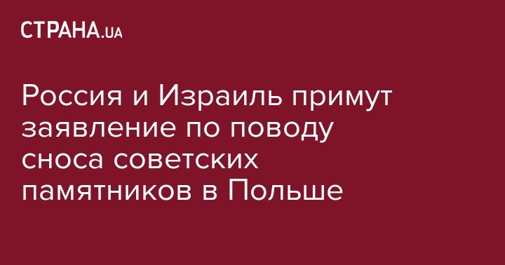 Россия и Израиль примут заявление по поводу сноса советских памятников в Польше