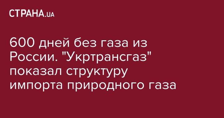 600 дней без газа из России. "Укртрансгаз" показал структуру импорта природного газа