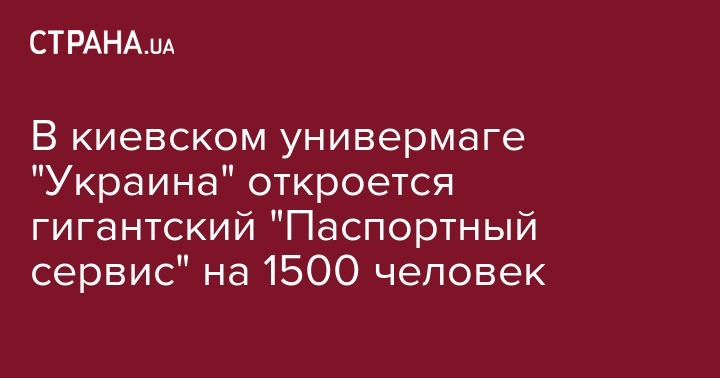 Пресс-секретарь госпредприятия "Документ"  Владимир Полищук сообщил  в Facebook о скором открытии в отремонтированном универмаге "Украина" в Киеве "Паспортного сервиса", способного принять 1500 человек в день.