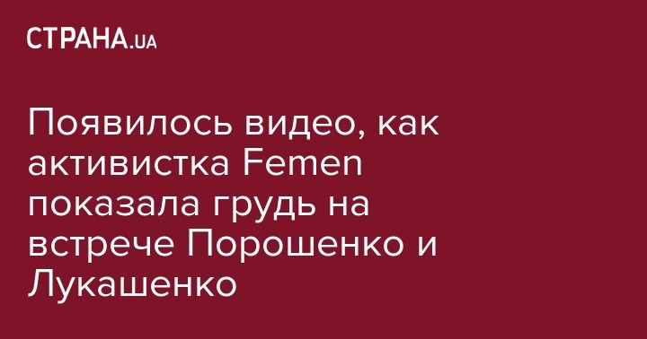 Появилось видео, как скандальная активистка Femen обнажила грудь на брифинге Порошенко и Лукашенко.