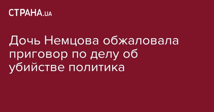 Дочь убитого российского оппозиционера Бориса Немцова Жанна обжаловала приговор по делу об убийстве ее отца. Об этом сообщила адвокат Ольга Михайлова, передает "Новая газета".