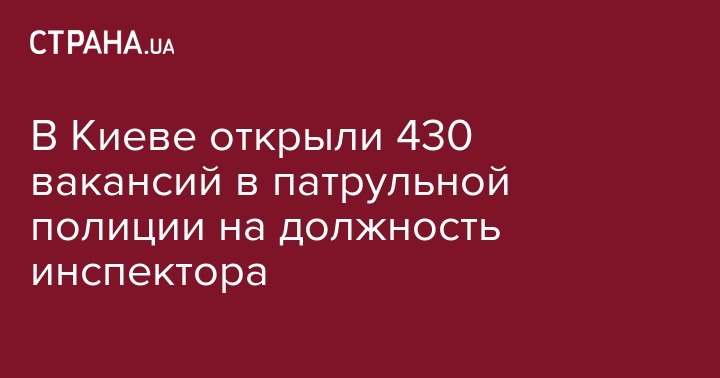 "С 19 июля  стартовал набор в патрульную полицию на должности инспектора патрульной полиции. Открыто 430 вакансий", - сообщили агентству "Интерфакс-Украина" в пресс-службе ГУ Нацполиции в Киеве в пятницу.