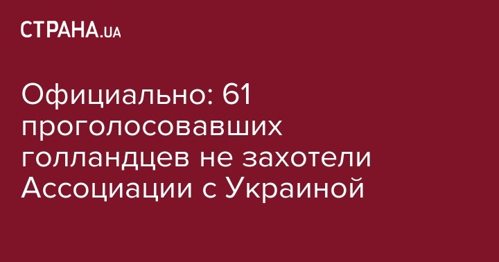 Официально: 61% проголосовавших голландцев не захотели Ассоциации с Украиной