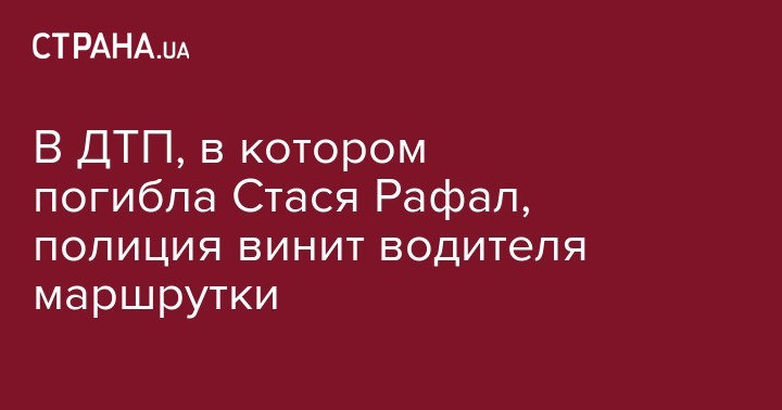 Полиция назвала потенциального виновника ДТП, в котором погибла спецкор "Страны" Стася Рафал. Об этом сообщает УНН.