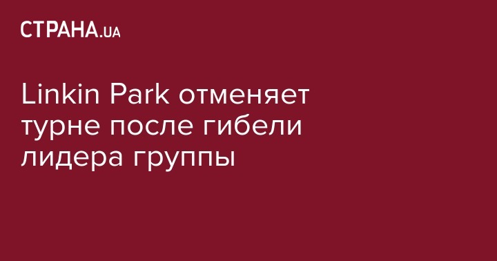 Американская группа Linkin Park сообщает об отмене турне в поддержку альбома One More Light по причине гибели вокалиста Честера Беннингтона. Об этом сообщает компания Live Nation.