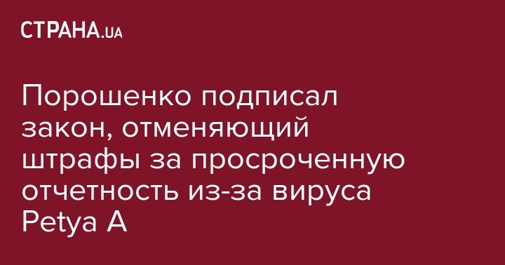 Порошенко подписал закон, отменяющий штрафы за просроченную отчетность из-за вируса Petya A