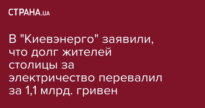 "Долг столичных потребителей за использованную электрическую энергию перед ПАО "Киевэнерго" на 1 июля 2017 года составил более 1,1 млрд гривен. В течение июня он увеличился на 91 млн гривен", - говорится в сообщении.