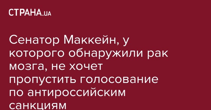 Как сообщала "Страна" 20 июля, у Джона Маккейна обнаружили рак мозга. После того, как сенатору во время операции удалили тромб вокруг левого глаза, выяснилось, что с кровяным сгустком связана первичная опухоль головного мозга, известная как глиобластома.