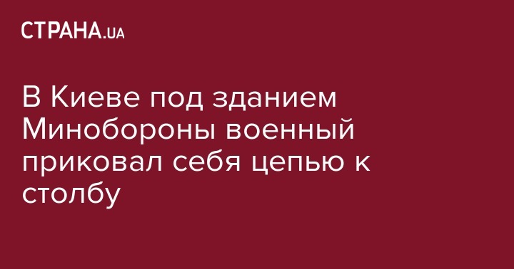 В Киеве под зданием Минобороны военный приковал себя цепью к столбу