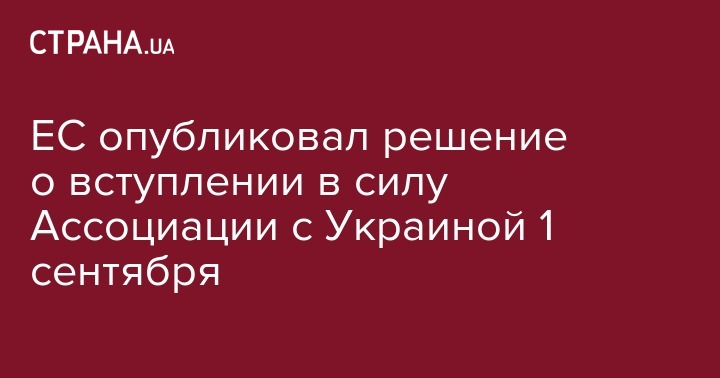 Информация о вступлении в силу соглашения об ассоциации между ЕС, Европейским сообществом по атомной энергии (Евроатомом- прим.) и их государствами-членами с одной стороны и Украиной - с другой была опубликована на сайте Официального журнала ЕС во вторник, 25 июля 2017 года.