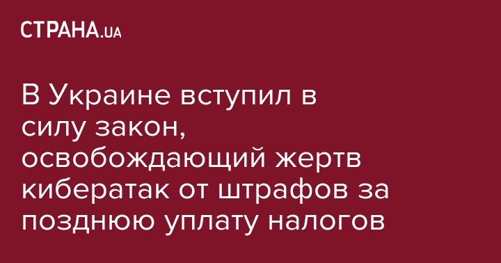 Сегодня, 26 июля, вступил в силу закон №2143-VIII, который освобождает жертв кибератак от штрафов за несвоевременную уплату налогов. Об этом сообщают "Украинские Новости"
