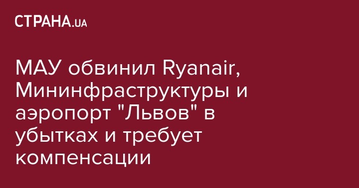 Авиакомпания "Международные авиалинии Украины" подала судебные иски к Мининфраструктуры, международному аэропорту "Львов" и лоукост-авиакомпании Ryanair с требованием прекратить противоправную деятельность и возместить 20,05 миллионов гривен убытков, понесенных МАУ в связи с необходимостью демпинга цен на собственные авиарейсы из-за низких цен на билеты конкурента.
