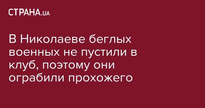 В Николаеве беглых военных не пустили в клуб, поэтому они ограбили прохожего