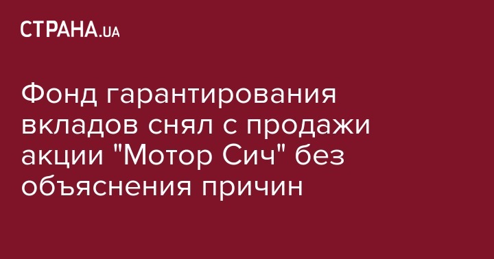Фонд гарантирования вкладов снял с продажи акции "Мотор Сич" без объяснения причин