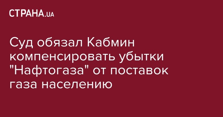 Окружной административный суд Киева обязал Кабинет министров найти средства для покрытия убытков НАК "Нафтогаза Украины" от поставок газа населению, религиозным организациям и теплокоммунэнерго. Соответствующее решение суда опубликовано в Реестре.
