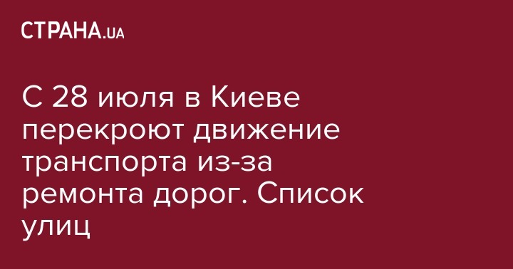 Из-за ремонта дорожного покрытия на ряде улиц Киева с 28 июля по 2 августа 2017 ограничат движение транспорта. Об этом сообщает пресс-служба Киевской городской государственной администрации.