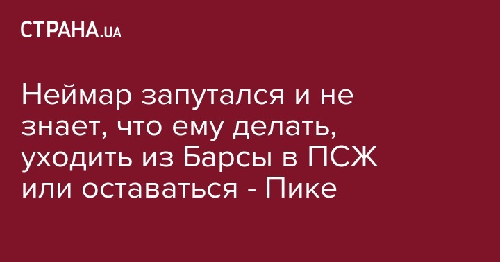 Защитник Барселоны Херард Пике заявил, что его партнёр по команде нападающий Неймар не знает, что делать - оставаться или переходить в ПСЖ. Об этом сообщает ESPN.
