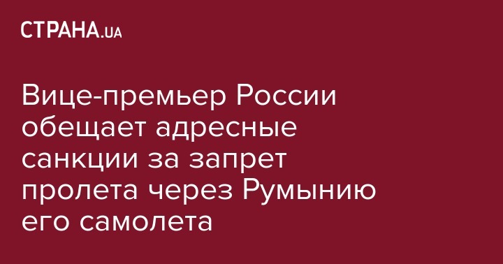 Вице-премьер России обещает адресные санкции за запрет пролета через Румынию его самолета