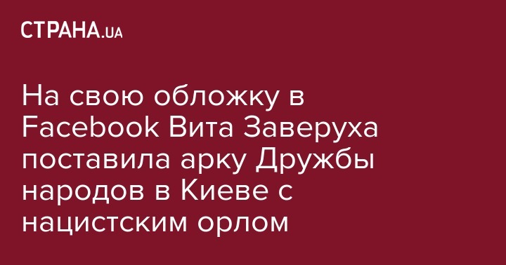На обложке в социальной сети Facebook у Виты Заверухи появилось изображение арки Дружбы народов в Киеве, на которой восседает нацистский орел. Об этом стало известно из сообщений девушки в социальной сети.