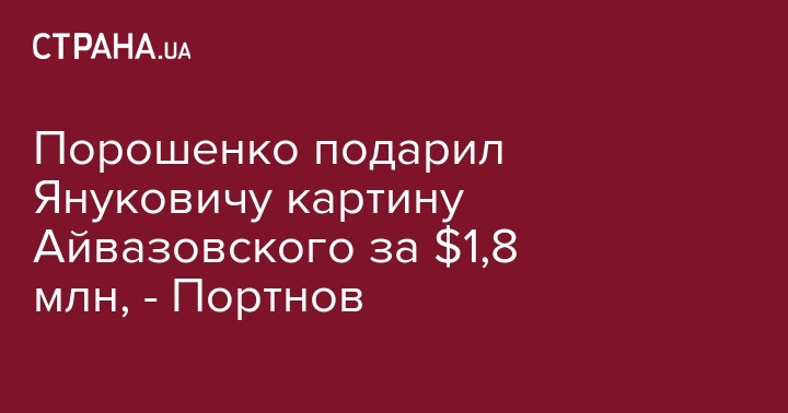 Президент Украины Петр Порошенко в 2012 году подарил тогдашнему президенту Виктору Януковичу картину Ивана Айвазовского. Об этом случае напомнил известный юрист и экс-заместитель главы Администрации президента Андрей Портнов, комментируя поздравление Порошенко с 200-летием художника.