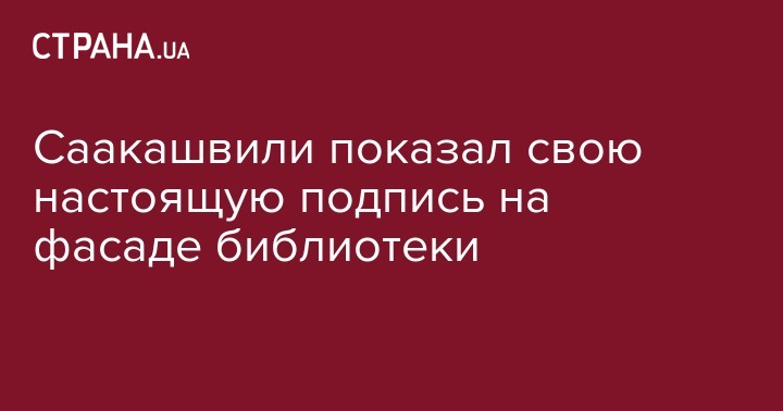 "Вот так выглядит моя подпись - документ из официального архива Президентской библиотеки Саакашвили в Тбилиси. Она на фасаде библиотеки", - написал Саакашвили и добавил, что библиотека, а не магазины и виллы - единственное здание, которое он оставил после себя.