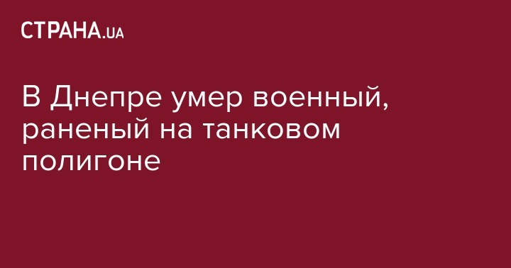 В Днепре умер военный, раненный в результате взрыва на танковом полигоне в пгт Черкасское. Об этом сообщила советник главы Днепропетровской облгосадминистрации Татьяна Губа в Facebook.
