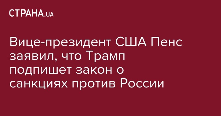 Вице-президент США Пенс заявил, что Трамп подпишет закон о санкциях против России