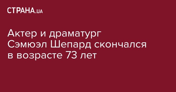 В США в возрасте 73 лет умер актер и драматург, лауреат Пулитцеровской премии и номинант на премию "Оскар" Сэмюэл Шепард, сообщает Broadway World.