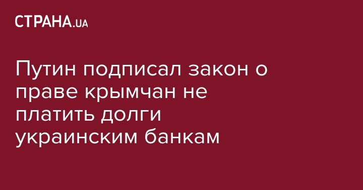 Президент России 31 июля подписал закон о погашении кредитных долгов жителями аннексированного Крыма перед украинскими банками. Об этом говорится на сайте Кремля.