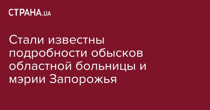 Появились подробности обыска мэрии и областной больницы в Запорожье, которые проводят НАБУ и СБУ. Об этом сообщает "Интерфакс Украина".