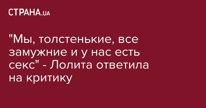 "Вообще худые - они очень злые. Мы, толстенькие, все замужние и у нас есть секс. Судя по всему, у вас его давно не было. Потому что женщина, у которой есть секс и любимый человек, который носит ее на руках, не позволяет себе выпады в адрес людей выдающихся - моих коллег и Аллы Борисовны частности", - заявила Лолита.