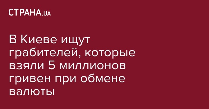 "Два человека пытались обменять средства на сумму 5 млн грн, во время операции на них было совершено разбойное нападение. Три человека с оружием завладели их средствами. В больницу они не обращались, имеющихся телесных повреждений не имеют. Откуда у них эти деньги, устанавливаем. Заявление они подали через полтора часа после совершения данного преступления", - сообщил Дуброва.