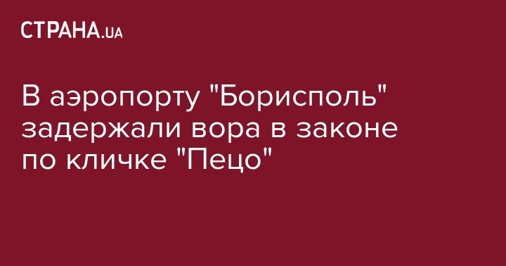 В международном аэропорту "Борисполь" по прибытию из Беларуси полиция задержала организатора российских вооруженных преступных группировок по прозвищу "Пецо". Об этом сообщает Департамент коммуникации Национальной полиции Украины, пишет официальный сайт Нацполиции.