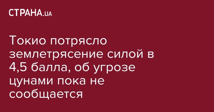 "Землетрясение силой 4,5 балла произошло в Токио в четверг, но предупреждения о цунами не было", - говорится в сообщении властей.