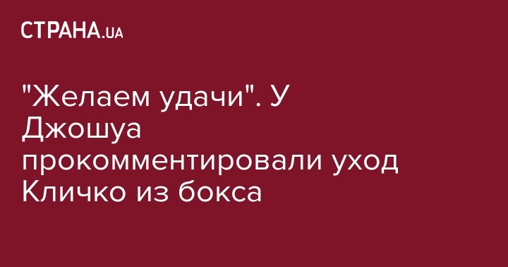 "Сегодня узнал от Бернда Бенте (менеджер Кличко - ред.), что Владимир Кличко принял решение завершить карьеру. Мы желаем ему удачи!", - сказал промоутер и менеджер Джошуа.